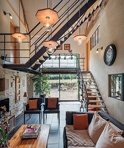 Rénover la grange en loft : Si vous préférez une approche moderne, vous pouvez choisir une décoration industrielle qui mettra en valeur les matériaux bruts de la grange, comme les poutres et les pierres apparentes. La structure spacieuse de la grange offre la possibilité de créer une mezzanine ou de transformer complètement l’espace en loft.